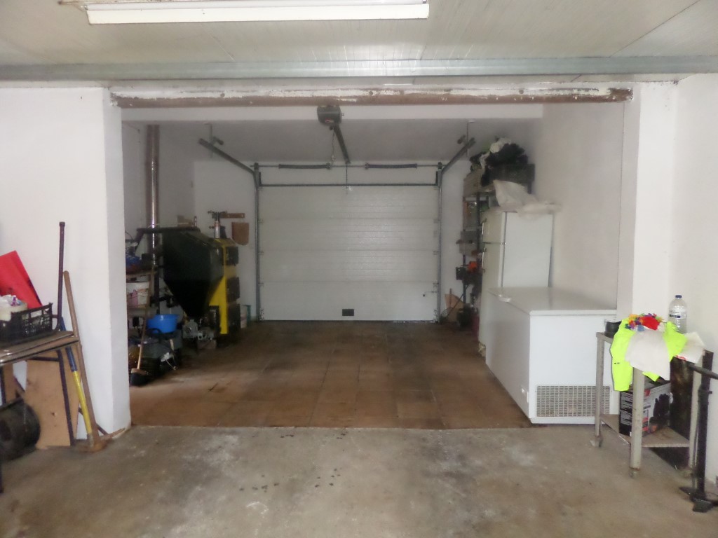 Garagem ampla para 2 carros e zona de máquinas.