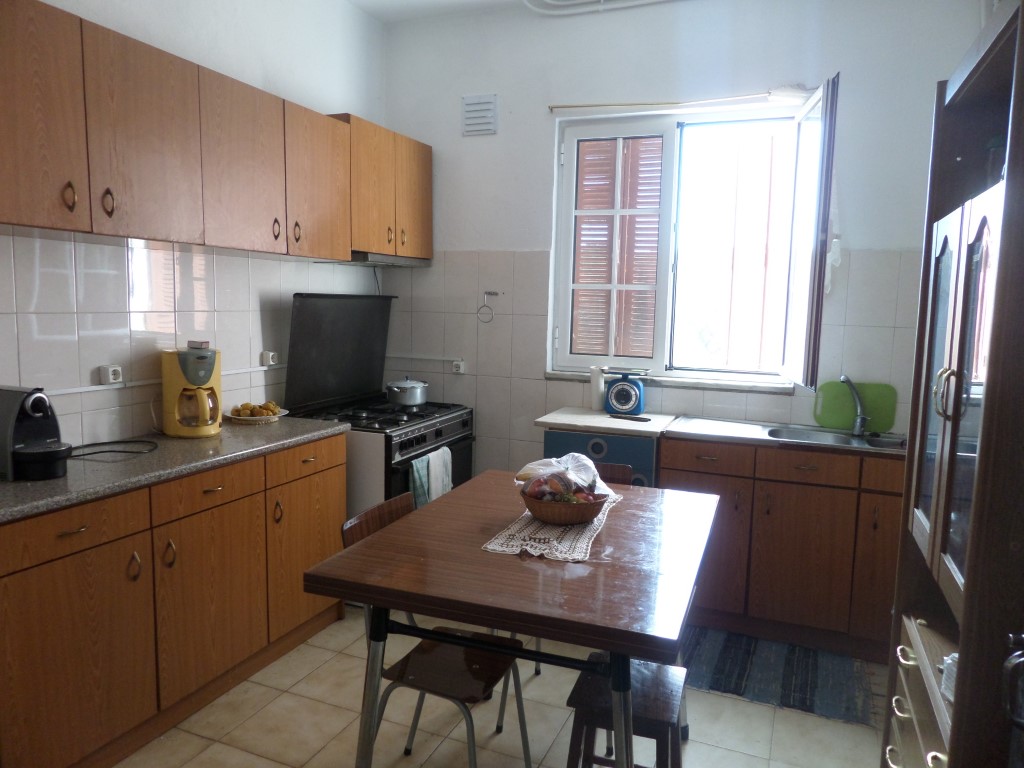 Rés do Chão: sala ampla com lareira/cassete, 1 quarto amplo, cozinha mobilada, 1 wc,