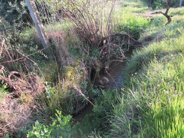 água de nascente e 2 poços.